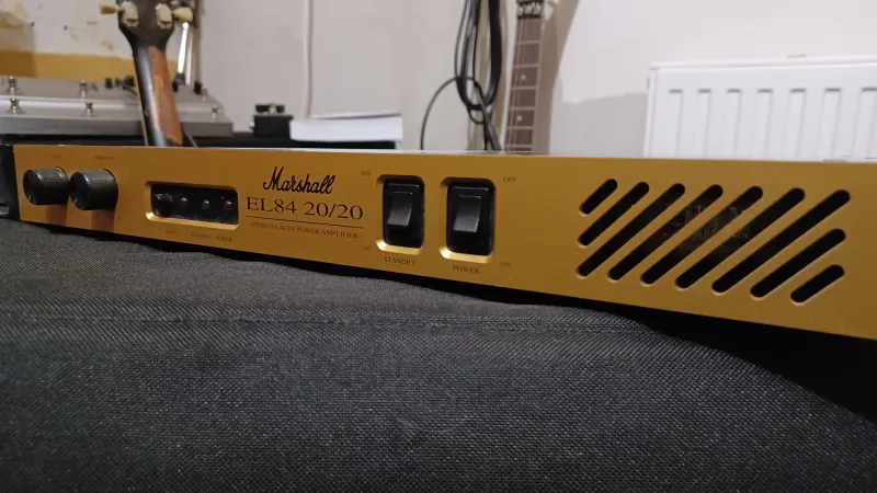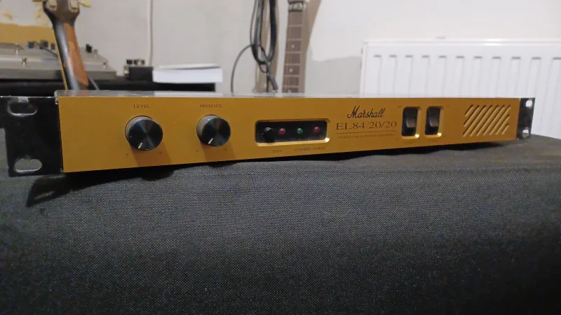 Motyóátalakítás miatt eladó egy Marshall el84 20/20-as sztereó végfok. Ne tévesszen meg a ˝kis˝ teljesítmény, a két csatornán az összesen 40W a dob mellett bőven elég, sőt!!! Jellemzők: 20 + 20 Watt teljesítmény, 4x EL84 végfokcső, 1x ECC82 előfokcső, Resonance kapcsoló (Deep switch), vonalszintű kimenet, presence, méretek: 1UR súly: 5 kg