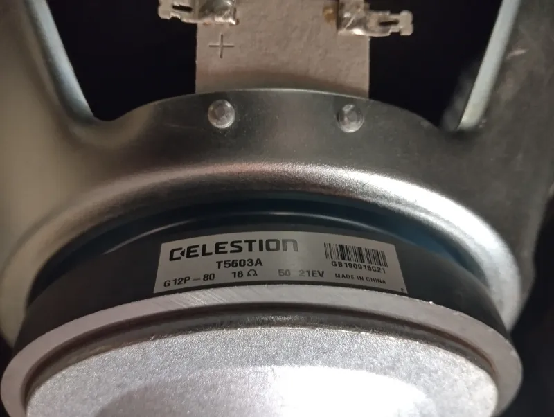 2 db 16 ohm Celestion Seventy 80 van sorosan (jajj) bekötve így 8 ohm az ellenállása. Teljesítmény 160W.