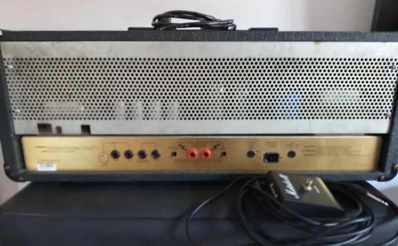 Marshall JCM900 SL-X 50 watt EL34 verzió ( modell 2500 SL-X) 1994-es gyártású, gyári lábkapcsolóval. Őszinte Marshall hang. Ide nem kell pedál... :-)