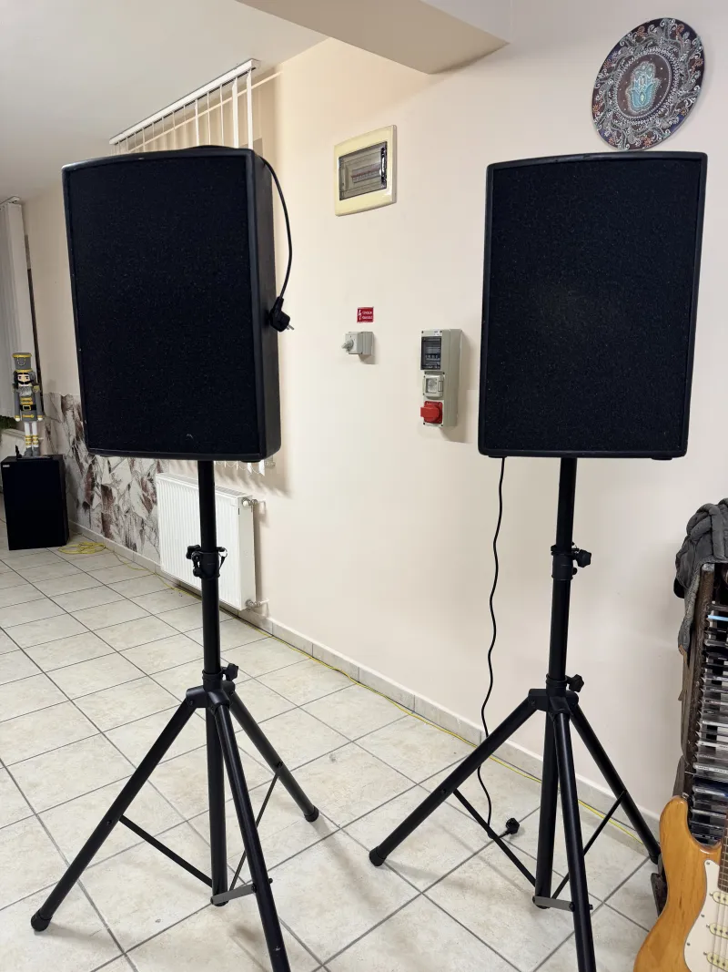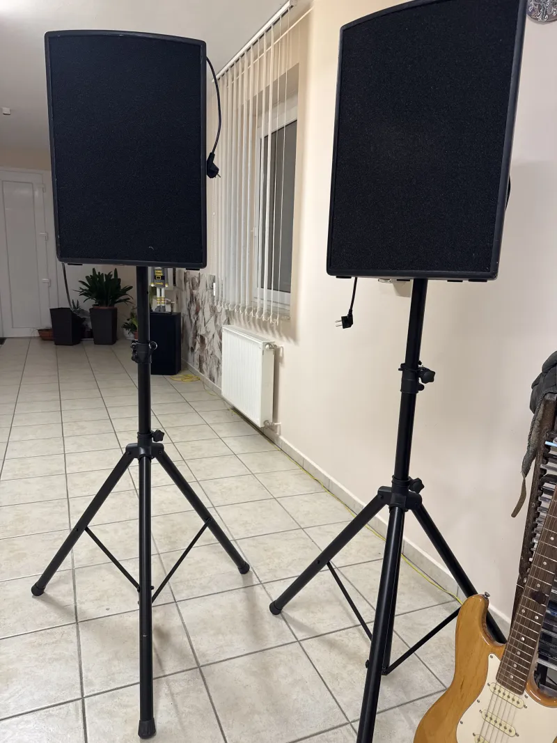 Kihasználatlanság miatt eladó egy Master audio végfokkal ellátott hangfalpár, álvánnyal.