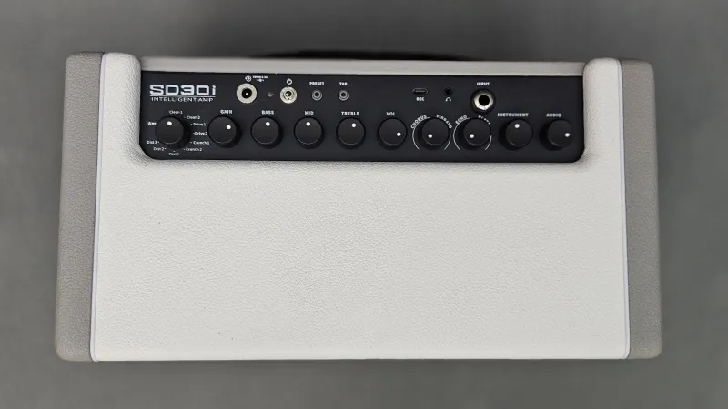 Erősítő, Gain, basszus, közép, magas hang, hangerő, chorus/vibrato, visszhang/delay, hangszer és audio vezérlők