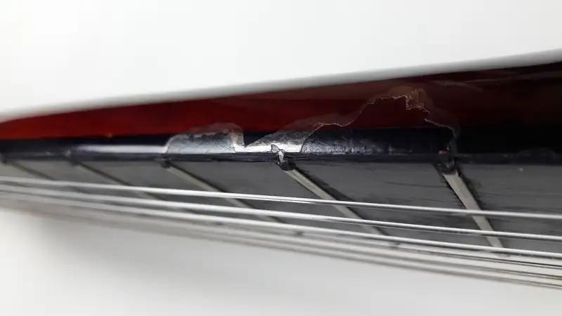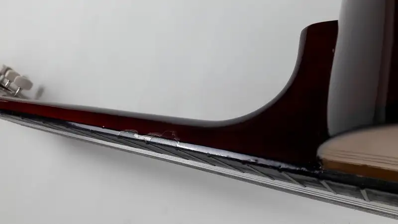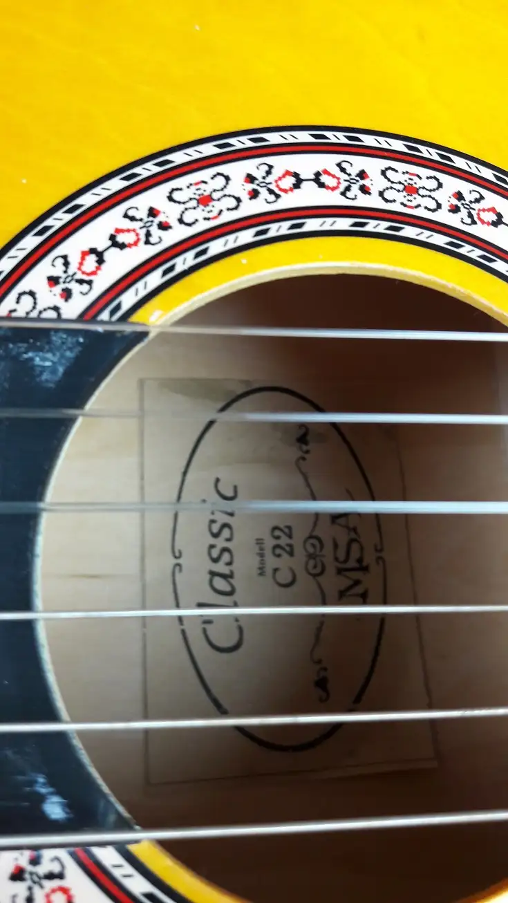 4/4-es klasszikus gitár, a nyak alsó, játék közben nem látható részén lepattant lakkozással! A gitár ugyan úgy használható mint ha hibátlan lenne!Jellemzők:
