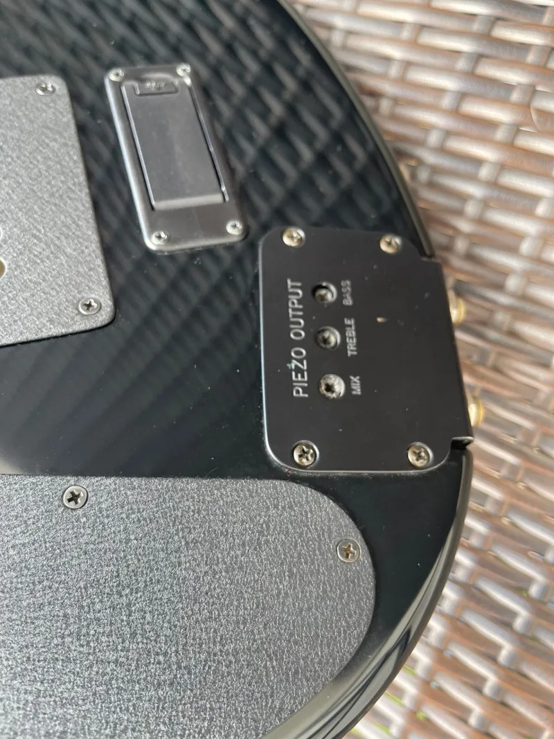 Switching: 3-way toggle pickup selector, with custom center position configuration; 3-way toggle piezo/magnetic selector