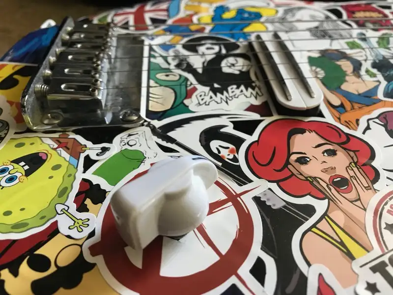egyedi matricázás (ha nem tetszik leszedhető, a gitár fekete)
