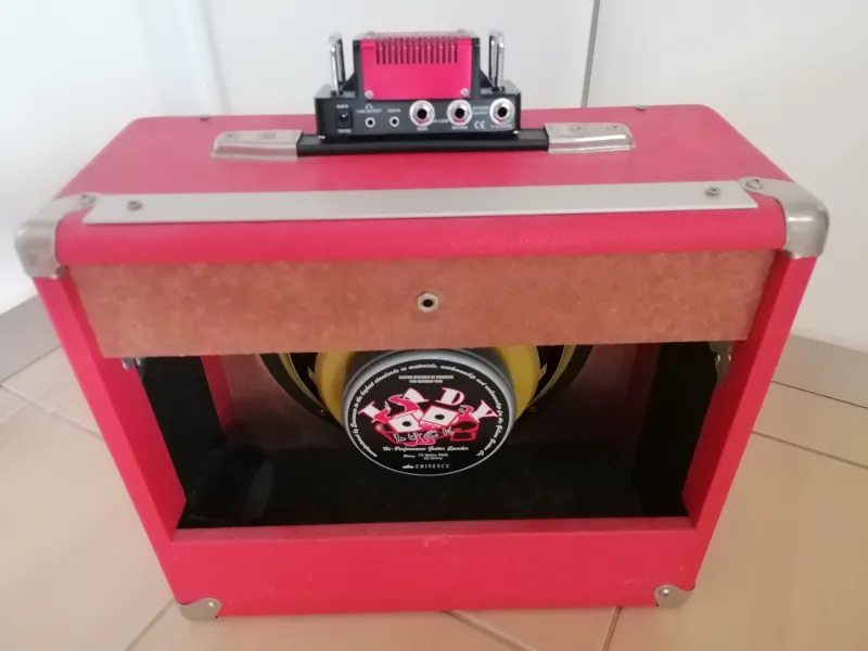 Eladó egy gitárláda a benne található új Eminence Lady Luck 16 Ohm hangszóróval.A képen látható Hotone erősítő itt külön hirdetésből megvásàrolható.