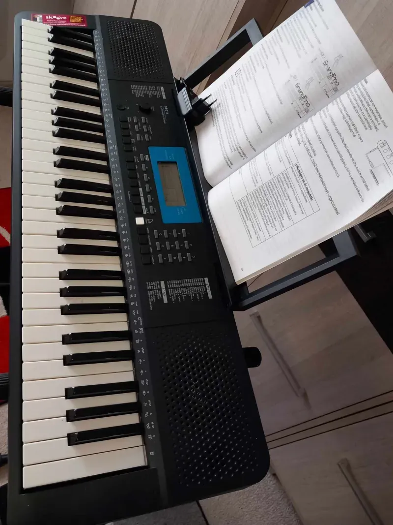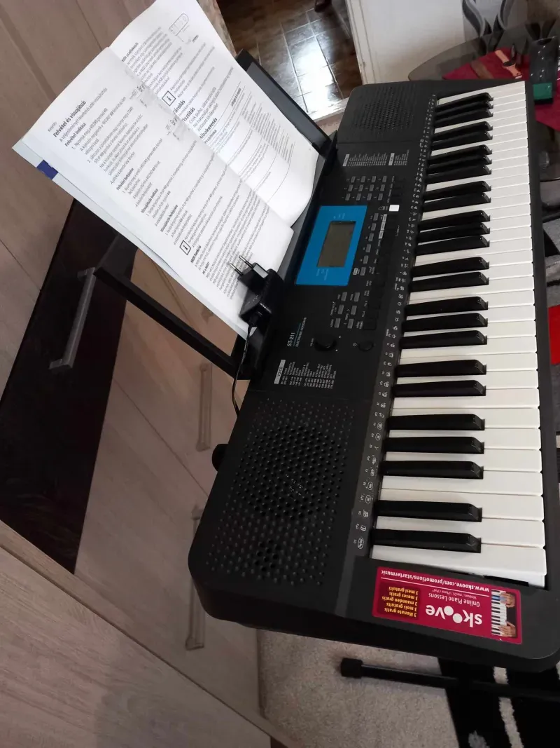 Új állapotú 61 dinamikus billentyűs , szintetizátor. . szép állapotban adapterrel,.kottatartóval,használati útmutatóval eladó.USB..rengeteg effekt..tanító funkció..mikrofon bemenet..stb......(igény szerint állvánnyal is).....Kísérő-automatikás szintetizátor, 61 billentés-érzékeny billentyűvel, oktató funkció, USB