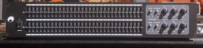 Eladó Omnitronic GEQ-2310 rackes grafikus equalizer.- 2 csatornás változat, 2 x 31 frekvenciavezérlés 1/3 oktávos lépésekkel
