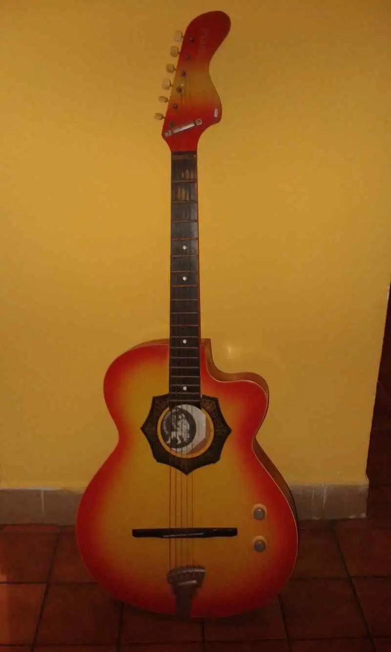 huendeskeseladó egy régi, eredetileg elektroakusztikus gitár. nem tudom az elektronikája milyen állapotban van, nem próbáltam. eredeti tokját tudom adni mellé. kocsmába falra, vagy gyűjtőknek ideális darab :D másra nem biztos, hogy jó ötlet :P