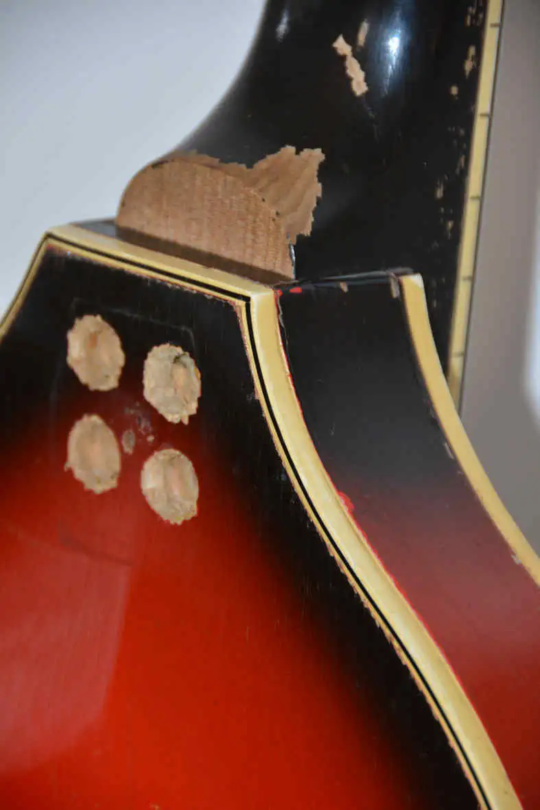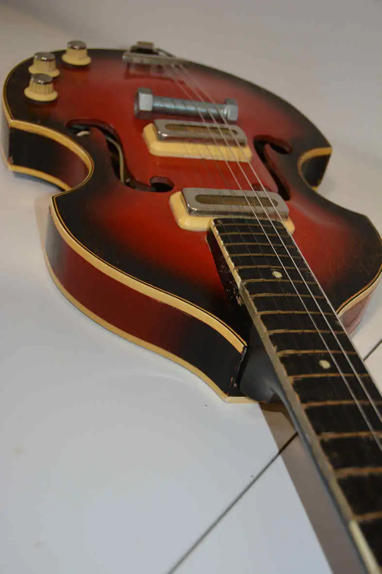 huendeskesEladó egy Orfeus hegedű formájú vintage gitár. Üreges testű. Valamikor a 70-es években készülhetett. A nyak egyenes, a bundok jó állapotban vannak, a húrtávolság jó, jól játszható a gitár, szép vintage hangja van. Minden jól működik a gitáron. Jack bemenetes. A gitár felületén a használatból adódóan leütődés, kopás van, de csak felületi. A húrláb jelenleg egy nagy csavar, anyákkal, de jól használható. Az eredeti húrláb nincs meg. Az egyik hangolókulcs műanyag része is hiányzott, a hangolókulcsra 1 dobókocka lett ragasztva, működik. A gitár nyakának alsó részén egy darab binding hiányzik. Budapesten a széll Kálmán tér környékén, vagy megtekinthető, kipróbálható Budakeszin, és postázom is.