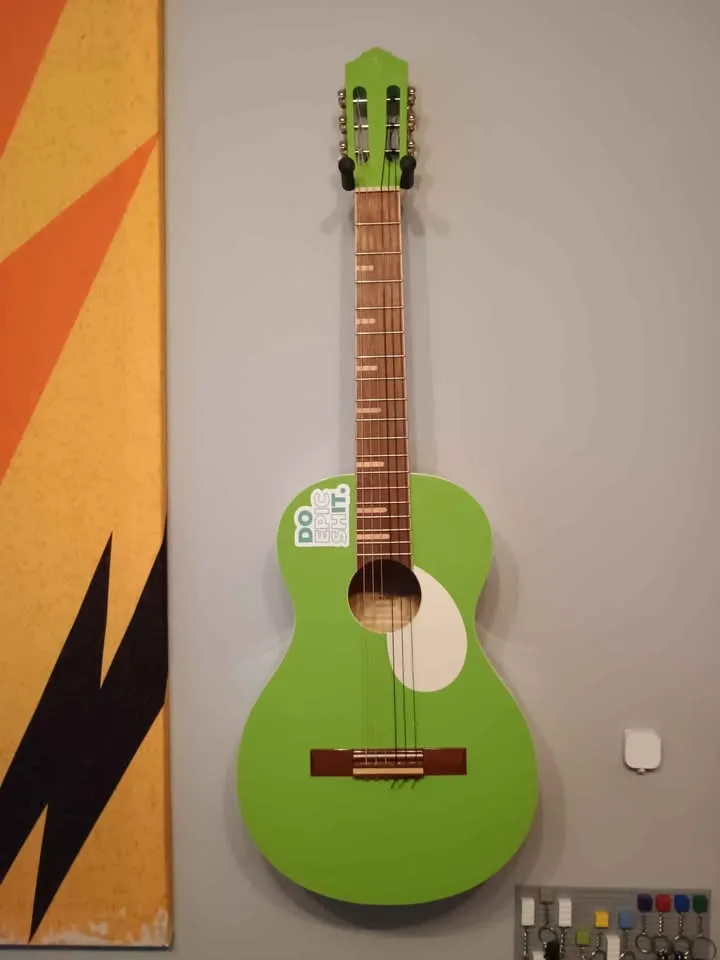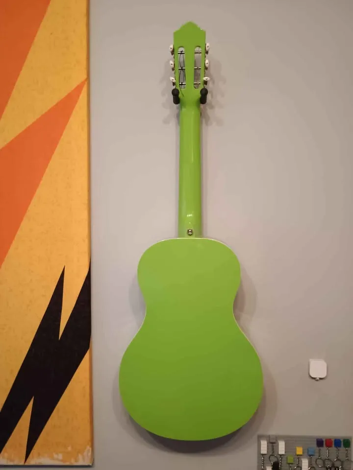 Eladó a képen látható szép zöld klasszikus gitár egy passzív hangszedővel kiegészítve, új húrokkal, tokkal.Kapcsolódó hangszerteszt