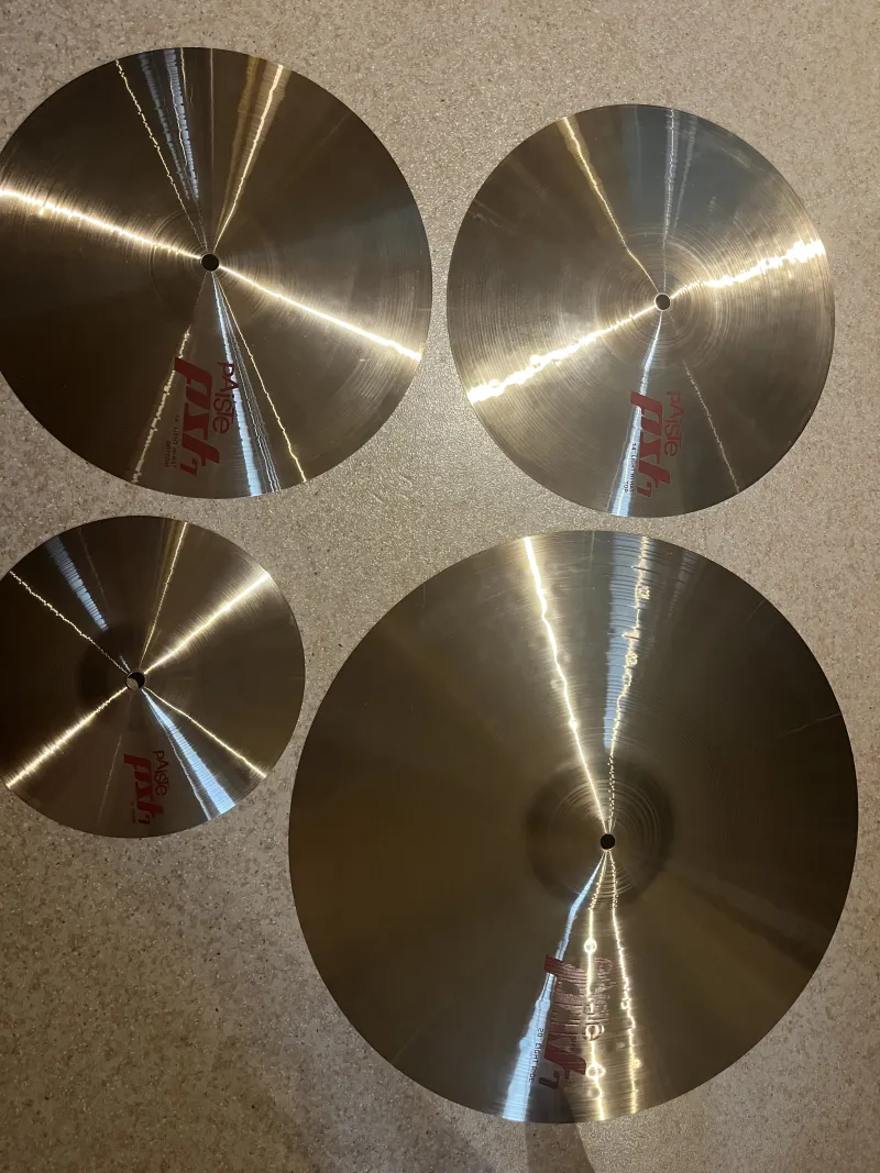 Eladóvá vált megkímélt, újszerű állapotú Paiste PST7 Light cintányér szettem, kihasználatlanság és kategória váltás miatt. Mindössze 5 hónapja vásároltam őket a Thomann-tól, és összesen kevesebb, mint 10 alkalommal voltak használva. Megvan a számla is. Templomi környezetben volt használva, hurkapálcás verővel. Pont ez a környezet miatt amikor kézzel tompítottam, a hőmérséklet különbség és az izzadt ujjak miatt a Ride-on van 1-2 nagyon apró oxidáció. Ezek kezelve vannak.