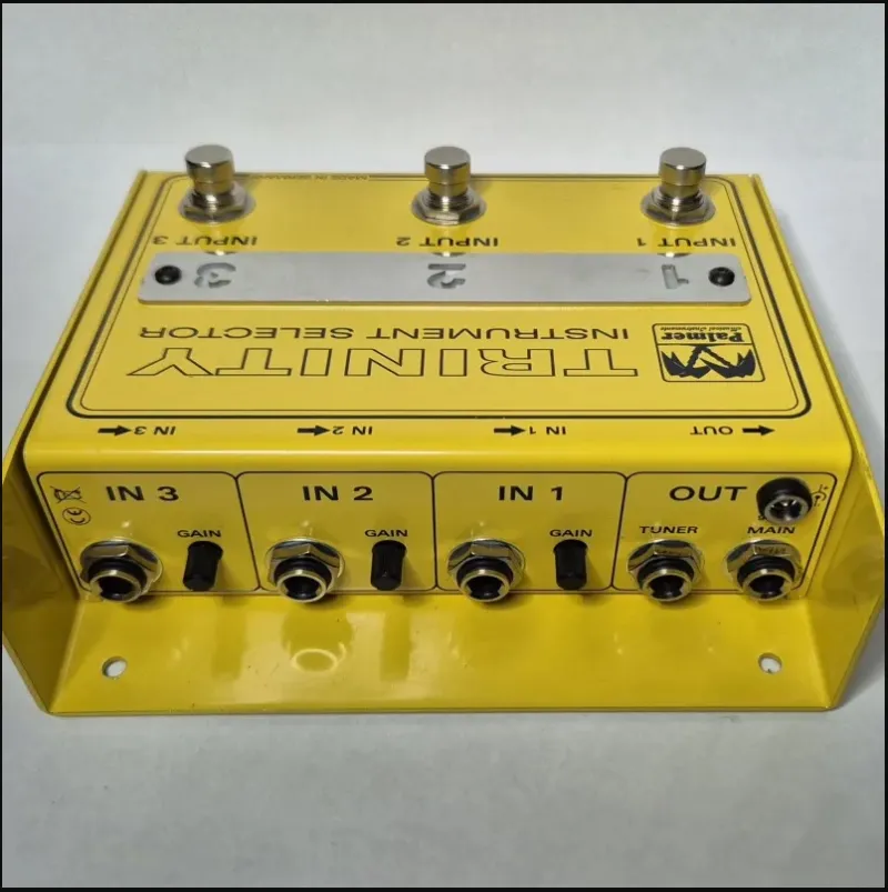 Palmer Trinity jelútválasztó pedál. Három bemenet (bemenetenként állítható jelnagyság), egy kimenet, plusz hangoló kimenet. Optoelektronikás kapcsolás, nincs benne relé, nincs, ami mechanikailag elromolhatna benne. Elpusztíthatatlan német gyártmány. Csere/beszámítás nem most nem aktuális. Csomagküldés megoldható vevő terhére.Kapcsolódó hangszerteszt (1)