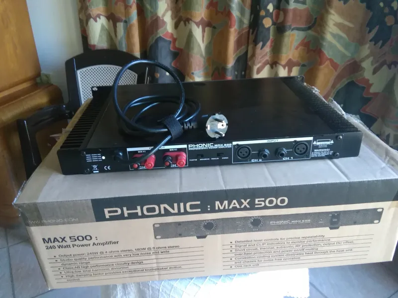 Eladó egy Phonic Max 500 240watt Power Amplifier! Összesen ha húsz órát használtam! Nálam csak porosodik! A Phonic MAX 500 teljesítményerősítője csatornánként 120 watt teljesítményt biztosít 4 ohmon egyetlen rackhelyen - ideális közepes méretű helyszínekre és monitorozási célokra. A MAX 500 földelőkapcsolókkal rendelkezik, és lehetőséget kínál sztereó vagy párhuzamos üzemmód közötti választásra. A MAX 500 erősítő bemenete XLR vagy telefonjacken keresztül, a kimenet pedig kötőpontokon keresztül történik, így a MAX sorozatú erősítő ideális a valós alkalmazásokhoz.Kapcsolódó hangszerteszt