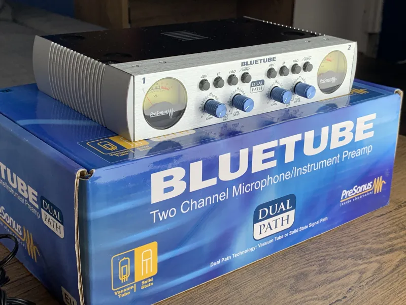 Eladó kihasználatlansága miatt egy Presonus BlueTube csöves/solid state, két csatornás előfok. Hibátlan állapotban van, keveset használt. Most már csak inkább a dobozában porosodik. Tajtinál vásárolt, garanciajegy képen csatolva. Jár hozzá eredeti doboza, papírjai, tápegység. Kiválóan használható mikrofon vagy hangszer előerősítésére. A csöves rásegítés külön potival kapcsolható be és mértéke állítható. Személyesen Budapesten átvehető, vagy postázhatom a vevő terhére (csomagautomatába 1500 Ft).Kapcsolódó hangszerteszt