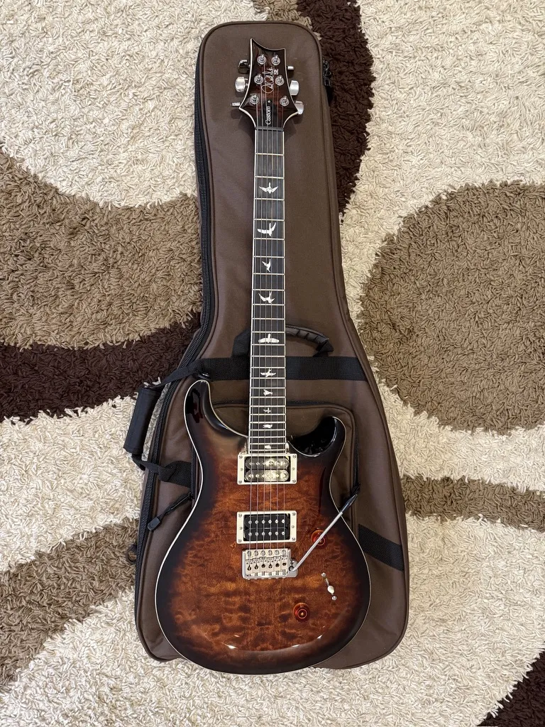 🎸 Eladó PRS SE Custom 24 Black Gold Sunburst gitár gyári tokjával!Kínálatomban egy PRS SE Custom 24 Black Gold Sunburst elektromos gitár található, amely a PRS legendás minőségét és elegáns megjelenését hozza el elérhető áron.