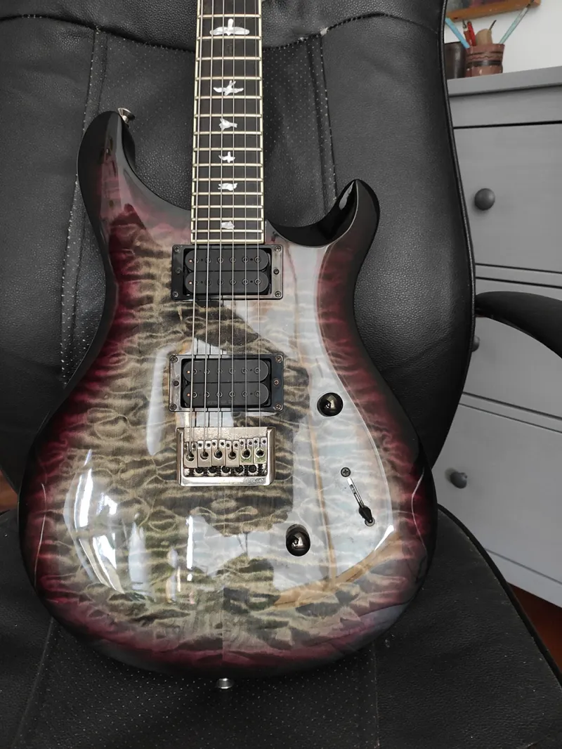 Vasak: PRS hangolókulcsok, 3 állású kapcsoló, 1 hangerő és 1 hangszín szabályzó, fekete króm szerelék