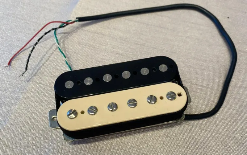 Selling custom ordered REVEL O.G. PAF.Wound to 9k, Rough Cast Alnico 2 magnet, 53mm Spacing, Reverse Zebra finish with Butyrate Bobbins and 4 Conductor wiring. American made boutique brand PAF humbucker, with great vintage feel with a modern touch.