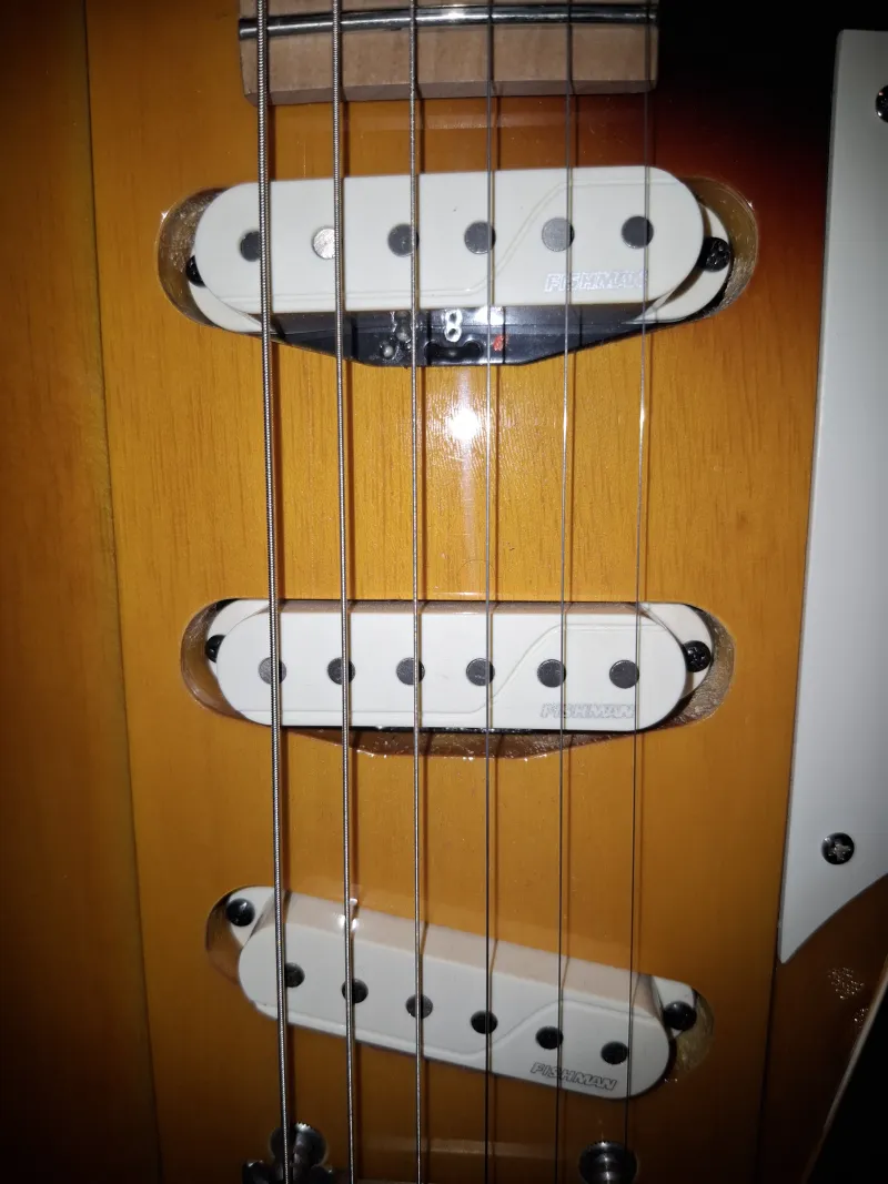 • Hangszedő: Három zümmögésmentes Fishman Greg Koch Gristle-Tone Signature szimpla tekercs