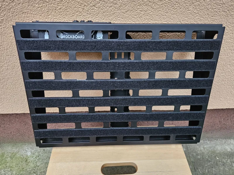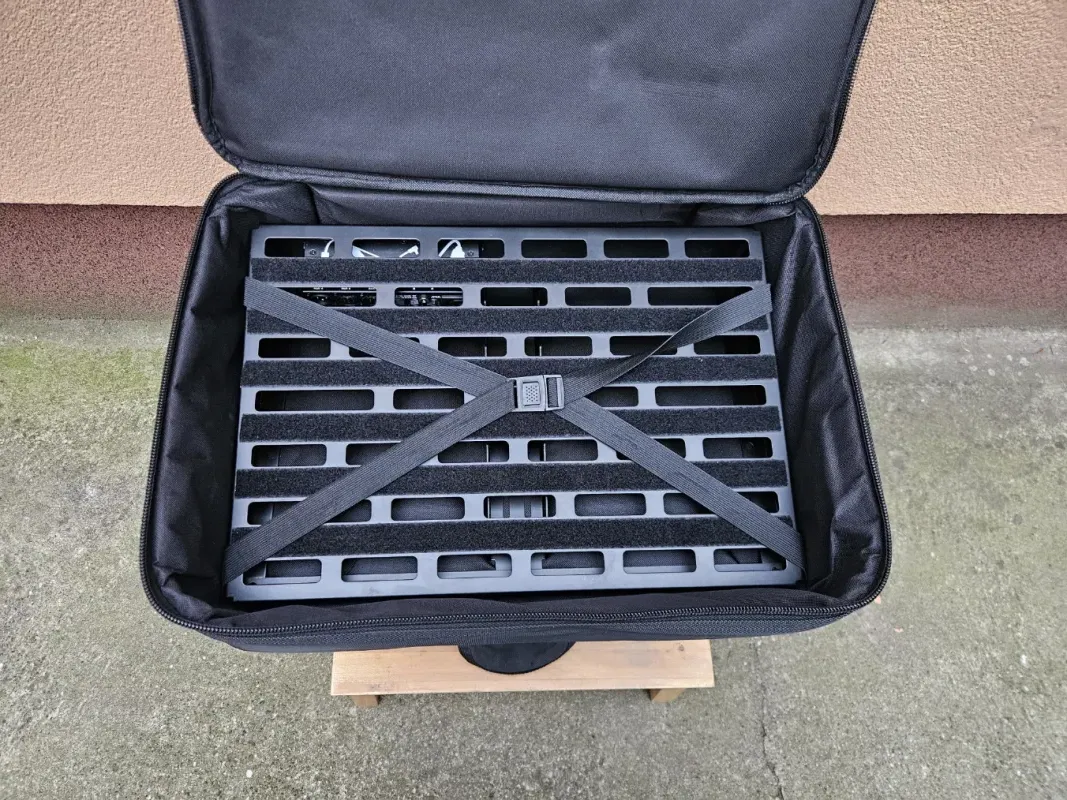Eladásra kínálom Quad 4.1-es pedálboardom. Nemrég vásároltam, de közben sikerült beszereznem egy kisebbet, így ezt mégsem használnám. A board tartalmaz egy Mod 1-es patchbay-t is. 2 db ˝sérülés˝ található rajta: az egyik cipzár húzókája nem eredeti, illetve a rácson van egy 1mm-es sérülés (fotózva). Feltételezem, hogy így tudták kivezetni a kábelt korábbi gazdájánál.