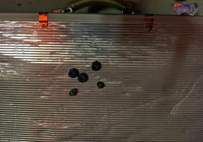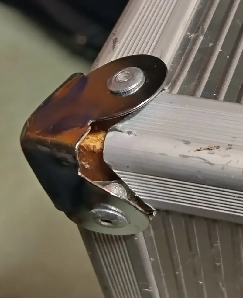 Néhány gumiláb lejött az aljáról (megvannak), az egyik sarok szegecs elengedett és a belső-alsó tépőzár is felvált sajnos.