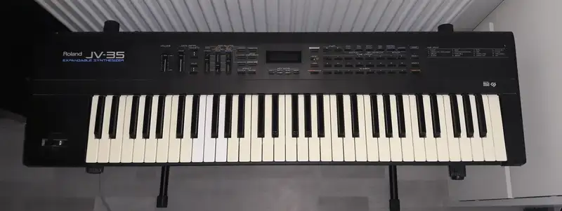 Eladó a képen látható, jól működő, Roland JV-35 típusú szintetizátor. Két hibája van, amelyek könnyen javíthatók: a Preset gomb beesett (valószínűleg cserére szorul), és a Volume potméter kontakthibás (én maximumon használom, esetenként hangerőpedállal, így nem okoz gondot).