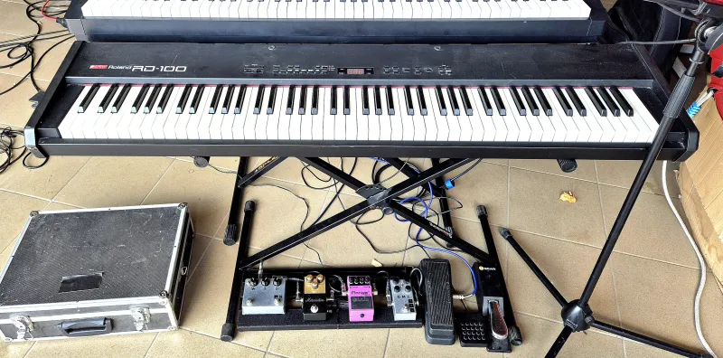 Roland RD 100 teljes billentyűzetű elektromos zongora állvánnyal és sustain pedállal.88 billentyűs, kalapácsmechanikás billentyűzet kilenc lenyűgöző RD minőségű hangszínnel, split és layer opciókkal.