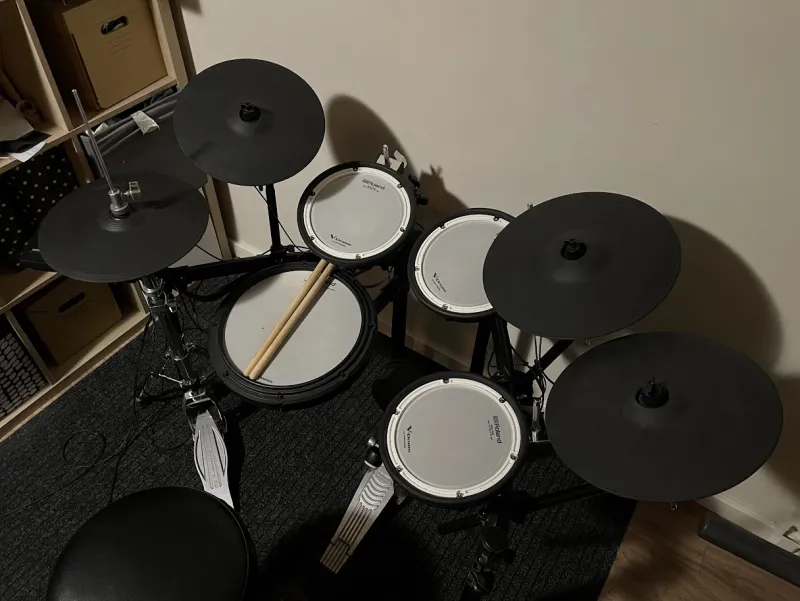 Eladóvá vált szeretett Roland TD-17KVX2-m akusztikusra váltás miatt.Nagyon jó ütésérzékenység, csendes gumifelületek, realisztikus dual-ply mesh fejek, valamint rengeteg beállítási lehetőség. A dobszett alig hagyta el a szobát, megvigyázott állapotú; egyedül a pergőn van egy kis pötty, ami a működést semmiben nem befolyásolja, illetve a hangmodulon egy kicsi karc. Kezdőknek és haladóknak is kiváló választás.