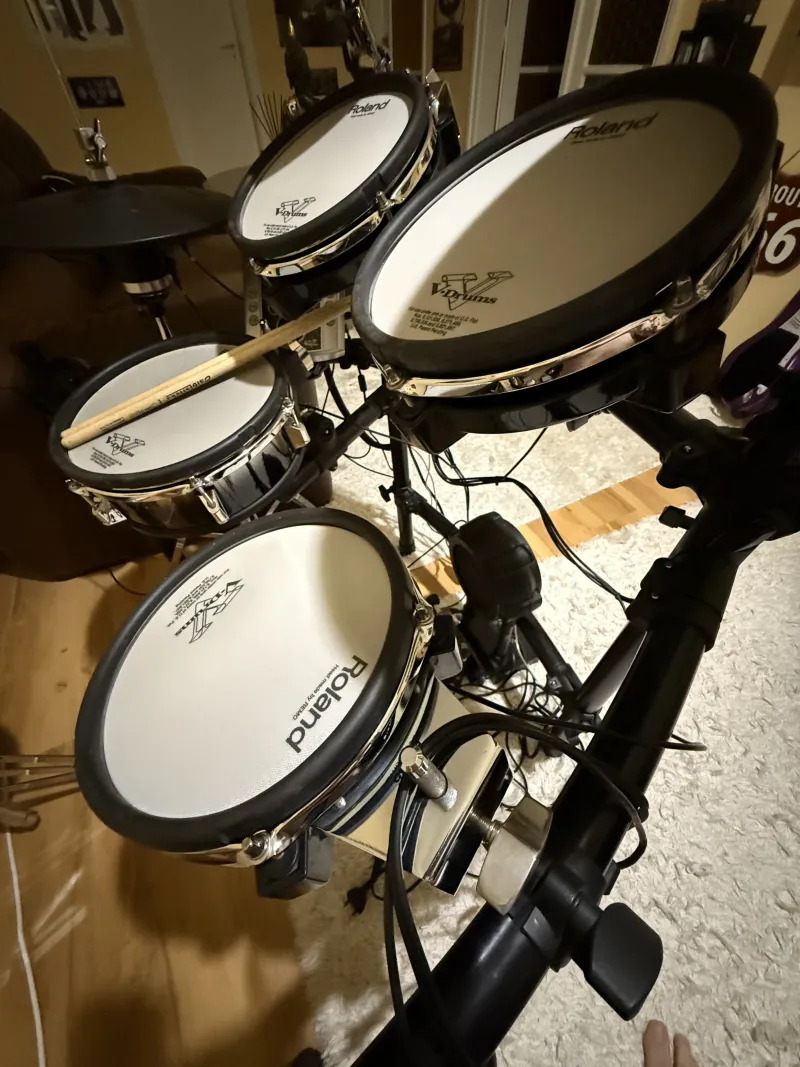 Eladásra kínálom párszor használt professzionális Roland elektromos dobcuccom .Esztétikailag mint műszakilag hibátlan .Háromzónás cin , VH 11 hi hat pearl állvánnyal , tama pedál , dobszék , zseniális dinamika és játék érzet, az ár fix !