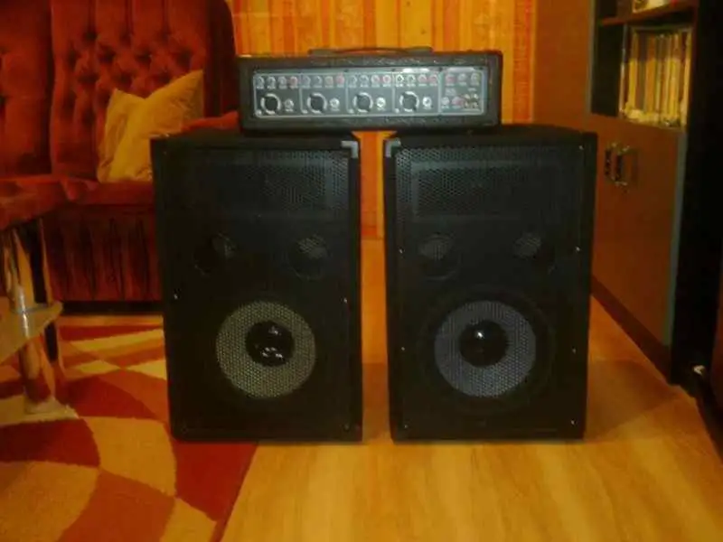 huendeskesNégycsatornás zenekari erősítő, hangfallal.Csak esztétikai hiba van a hangfalakon , műszakilag minden tökéletesen működik.