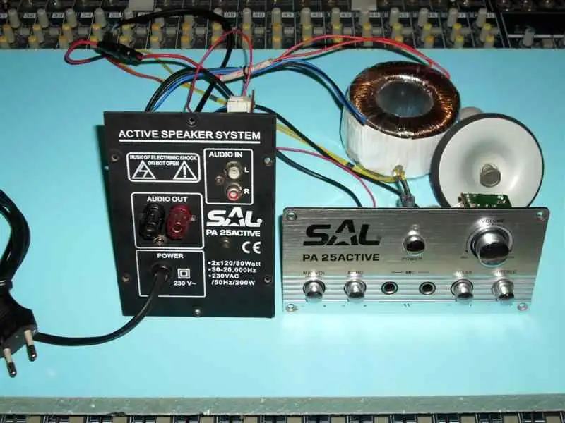 huendeskesEladó a képen látható SAL PA-25 2x80/120W-os aktív hangfal komplett erősítője, táppal együtt. 2 mikrofon bemenet, beépített visszhang, Mély magas hangszín potik, állítható visszhang, hangerő poti. Sztereó RCA vonal bemenet. + egy hangfal köthető rá. Hibátlanul működő, újszerű állapotú. Csak be kell szerelni a hangfalba. Polgárdiban kipróbálható. Köszi, de csere nem érdekel.