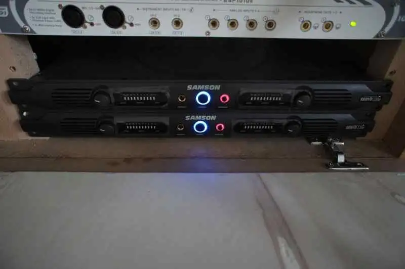 Samson Servo 120a 1U magas végfok, eddig gitárládához használtam, bőven elég 50% kihajtva a hangereje. Használható bridge és sztereo módban is. Jó állapotban van, a mute gomb néha nem kapcsol be, de működést nem befolyásolja.