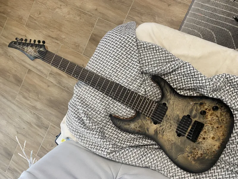 Eladó 7 húros gitárom, hibátlan állapot, új húr.Az ára gyári hangszedőkkel érvényes jelenleg Seymour Duncan Nazgül-Sentient szett van benne de az ár az eredeti hangszedőkre vonatkozik.