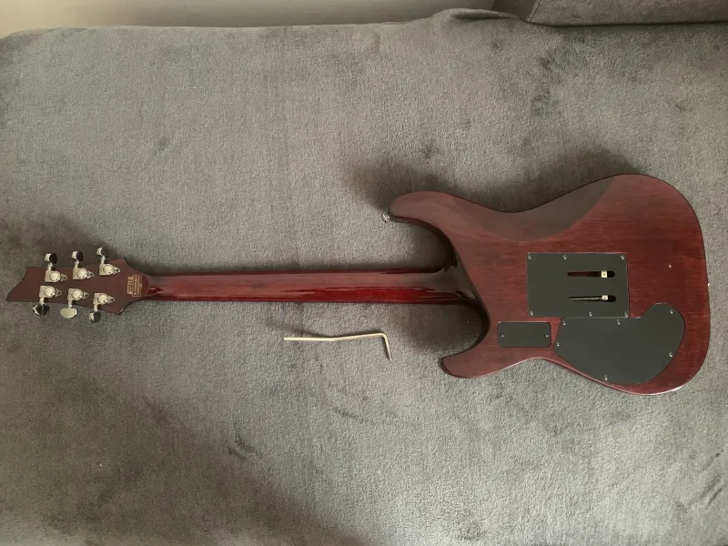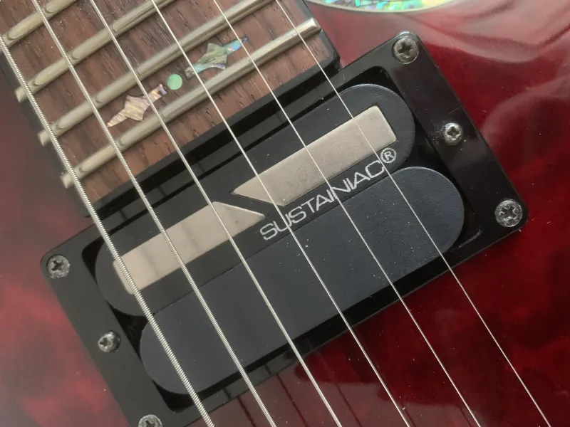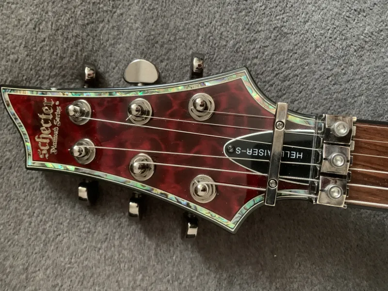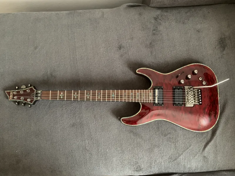 Hellraiser széria, mahagóni test, juhar fedlap, ragasztott mahagóni nyak, C profil, rózsafa fogólap, rádiusz: 355 mm, 24 Jumbo érintő, Floyd Rose 1500 Series húrláb, Grover hangolókulcsok, menzúra: 648 mm, felső nyereg szélessége: 41,3mm, Schecter USA Brimstone-Six hangszedő és Sustainiac, Volume, Tone és Intensity szabályzók, 3 állású hangszedő kapcsoló, 2 állású kapcsoló a Sustainiac aktiválásához/deaktiválásához, 3 állású mód választó (Fundamental, Mix, Harmonic), Black Cherry kivitel