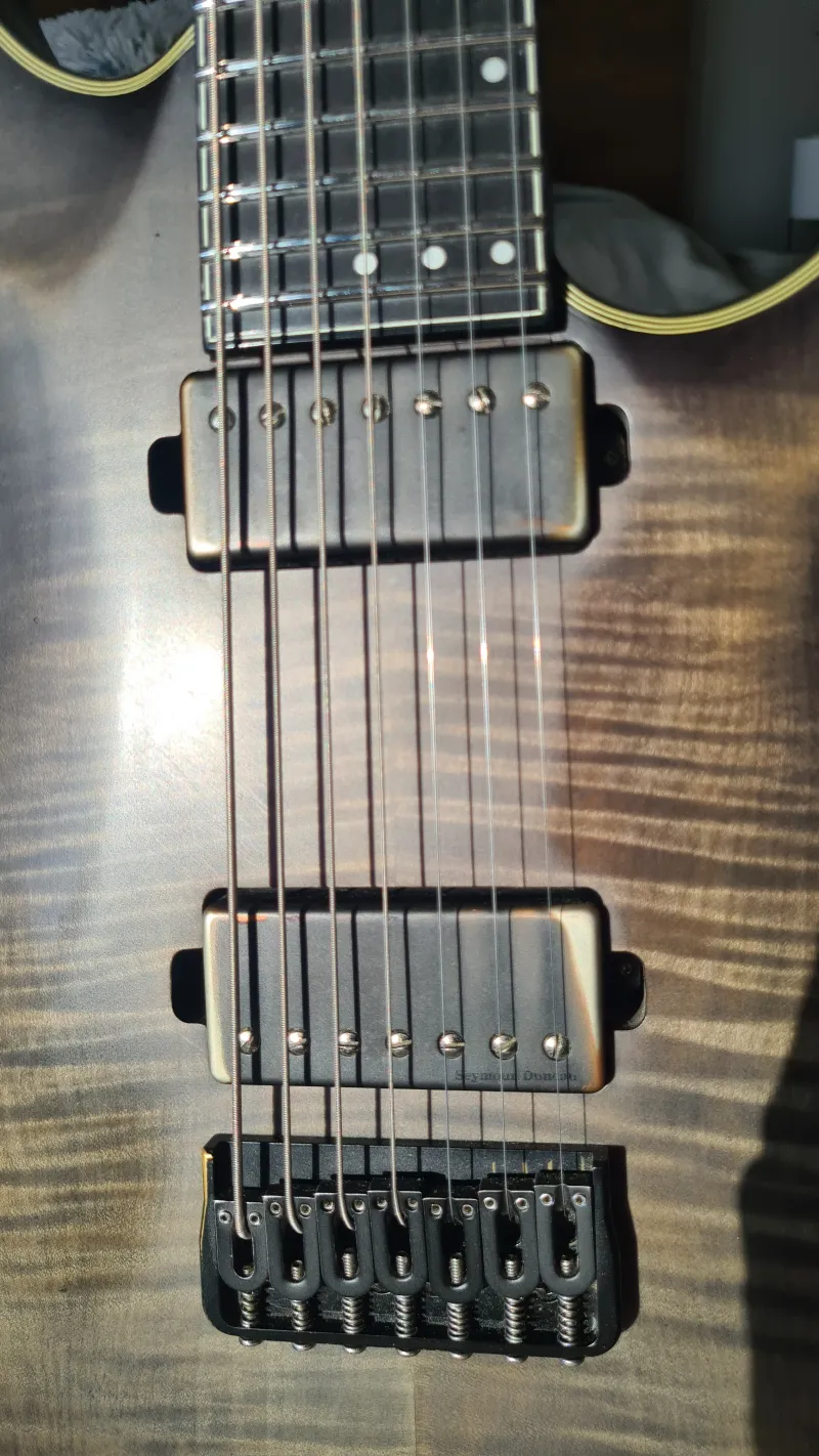 10-52+74-es húrszettel beállítva Drop G-re GuitarClinic által.