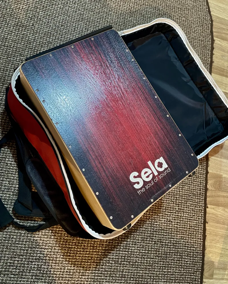 Sela SE 050 Varios with wooden body. Features adjustable/removable snare system for versatile tone shaping. Includes gig bag; clean and well-maintained, ready to play.
