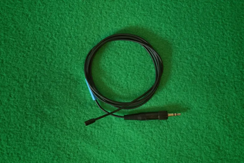 A mikrofonkapszula és a kábel fekete színű, sennheiser wireless rendszerekhez való 3,5-es jack csatlakozóval.