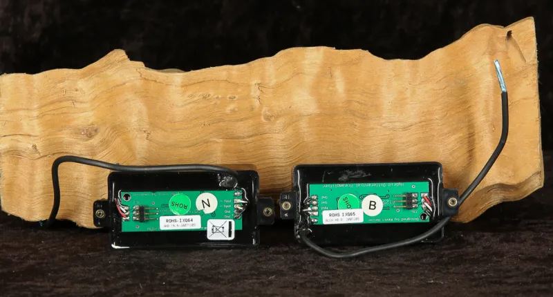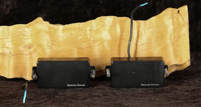 Seymour Duncan Blackouts szett. A két hangszedő, a négy csavar hozzá, és négy darab rugó. A kábel vége csupasz, eddig be volt forrasztva.