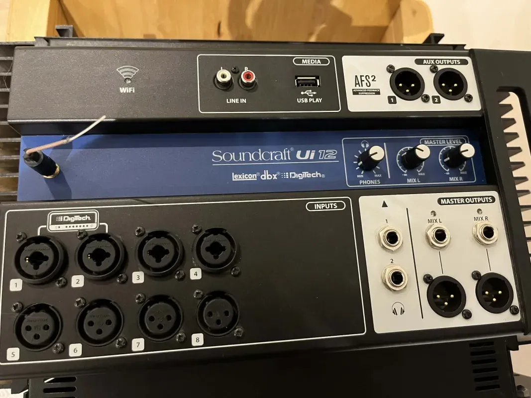 Sziasztok!Eladó Soundcraft Ui12 keverőm. Mint látható az antennatakaró műanyag sajnos elkopott a csuklópontoknál így lejön, de így is tökéletesen működik. Nálam kipróbálható, a közelben tudom fuvarozni. Posta mehet vevő terhére.