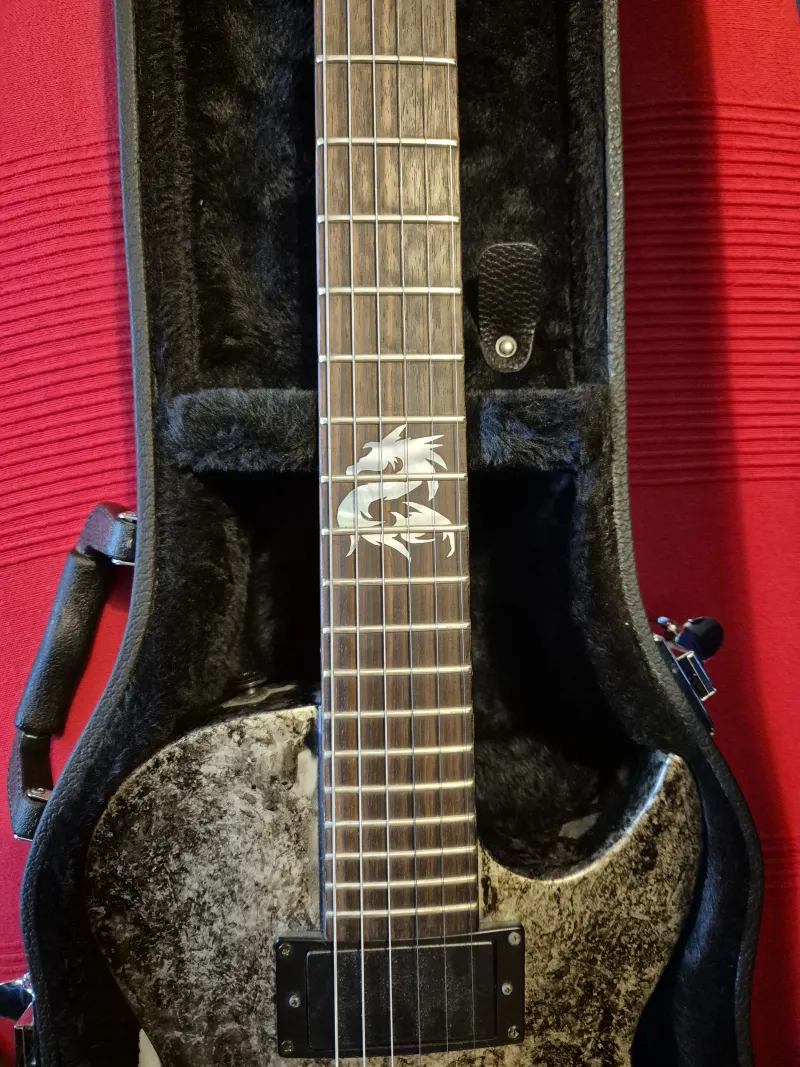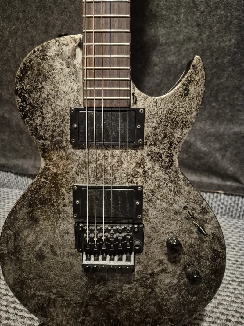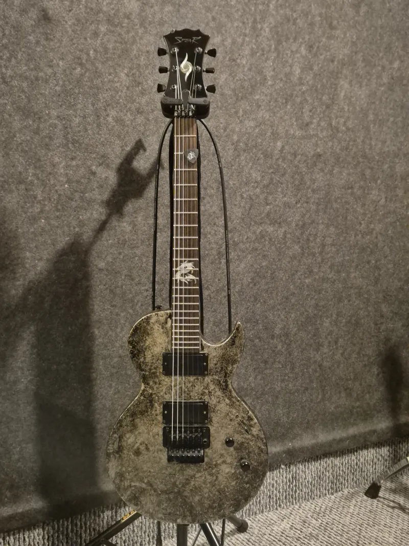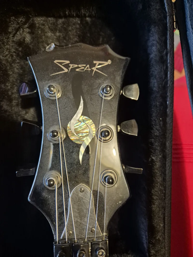 Elektromos gitár licencelt Floyd Rose tremelo rendszerrel! Használt gitár nagyon jó állapotban! Specifikációk: Ívelt juhar tető, mahagóni hátlap, mahagóni nyak, indiai rózsafa fogólap, öntött hangszedő hangolókulcsok, Spear FH1 és FH2 humbucker hangszedők, licencelt Floyd Rose Double Lok Tremelo rendszer, 1 hangerőszabályzó, 1 push/pull hangszínszabályzó, 3 állású választókapcsoló.(google fordító)Tremolo kar nincs !Az utolsó képen a fej tetején minimális leverődés!