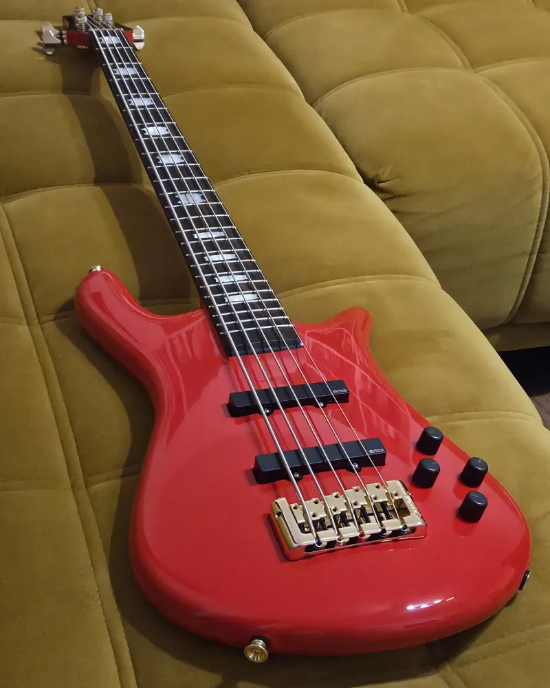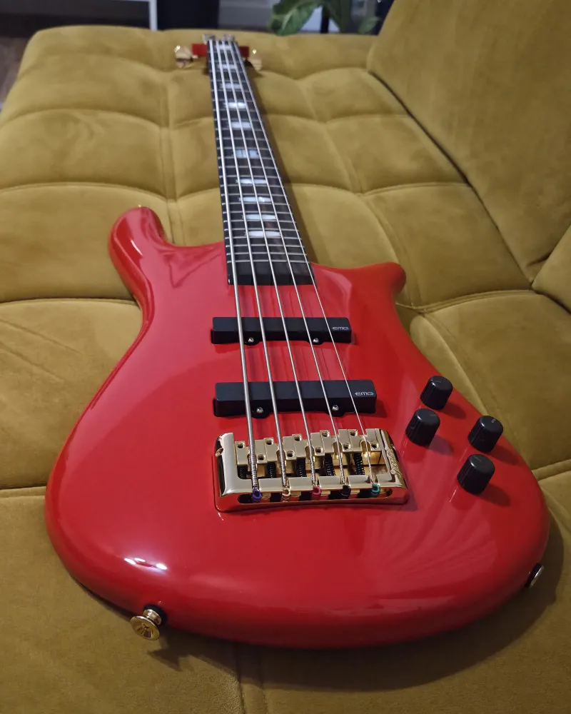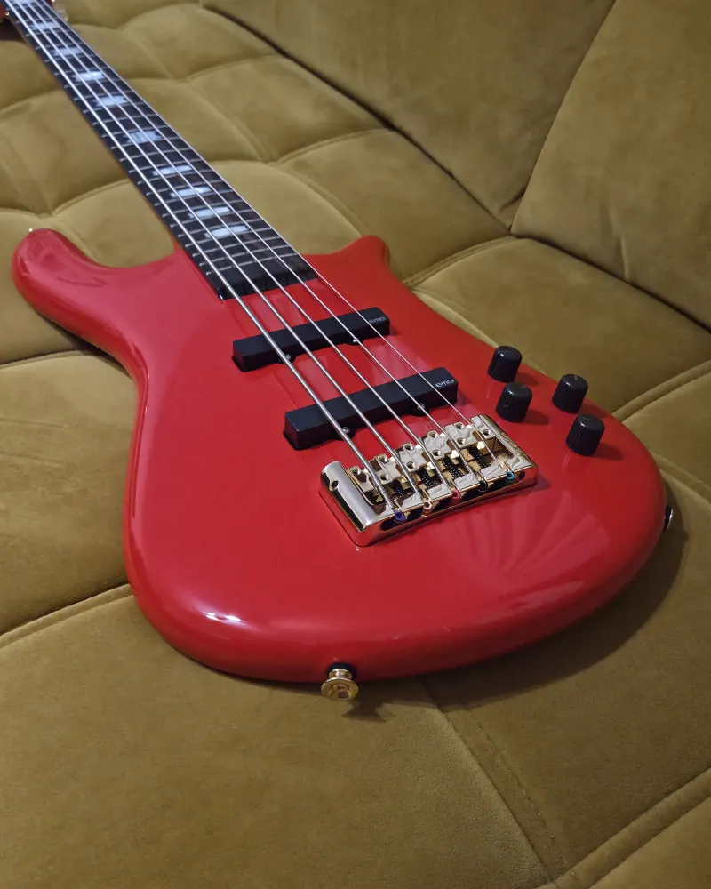 Ez a modell Solid Red színben, arany hardverrel már nem kapható újként. Páratlan lehetőség egy igazán ritka darab megszerzésére 🙂 Cseh gyártmány, kiváló minőség, hatalmas sustain és brutál Spector hang (erőteljes, konkrét, mégis meleg hang, klasszikus ˝Spector growl˝), ikonikus Spector megjelenés.