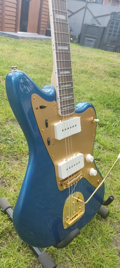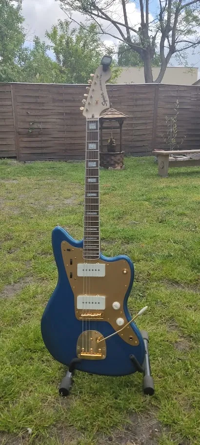 Eladó újszerű állapotban lévő Squier 40th Anniversary Jazzmaster Gold Edition LRL Lake Elektromos gitár. Első tulaja vagyok, 2023. áprilisában vásároltam a Thomanntól, és rögtön kapott egy teljes beállítást a Svajcsik Gitárműhelyben. Jelenleg egy régebbi 10-es húrkészlet van rajta. A beállításon kívül sosem hagyta el a szobát.