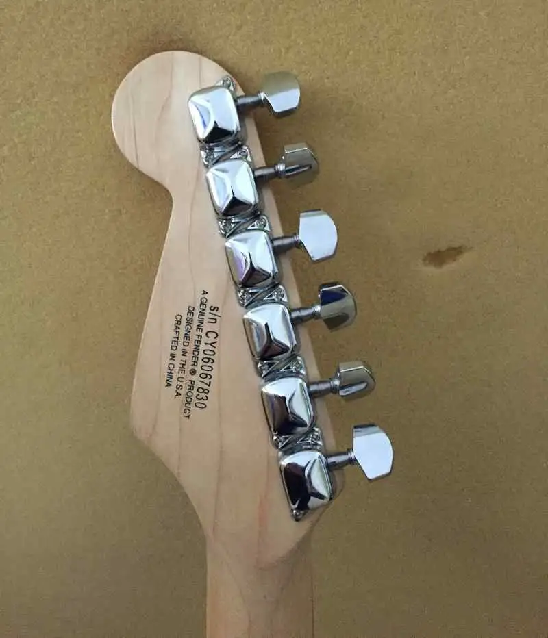 Bullet széria, Stratocaster forma, hársfa test, csavarozott ˝C“ formájú juhar nyak, menzúra: 25.5˝ (64.8 cm), 21 Medium érintő, rózsafa fogólap, fehér pont berakás, 3x Standard Single-Coil Strat hangszedő, hangerő, 2 hangszín, 5 állású pickup kapcsoló, króm szerelékek, Vintage Style Tremolo húrláb, fedett hangolókulcsok, műanyag felső nyereg, fekete szín