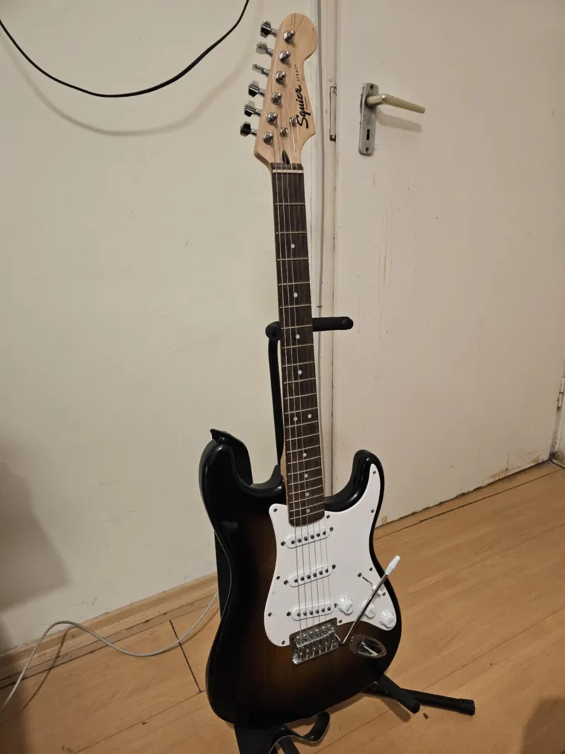 Eladó használt Squier Bullet Stratocaster. 2021ben lett vásárolva mint első elektromos gitárom. Használatból adódó nyomok láthatóak rajta illetve volt egy matricás korszaka és a koptatón ez látszik bizonyos fényviszonyoknál. Sajnos jó ideje csak a port fogja nálam így szeretném tovább adni.Ernie Ball super slinky húrok vannak rajta.