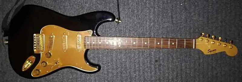 huendeskesEladó ez a kicsit feltuningolt Squier. Arany hardware, Anico V hangszedők. A kapcsoló középállásban a nyaki és a hidi hangszedőt kapcsolja (telecaster). Alacsony húrnyomás, kitűnő állapot.