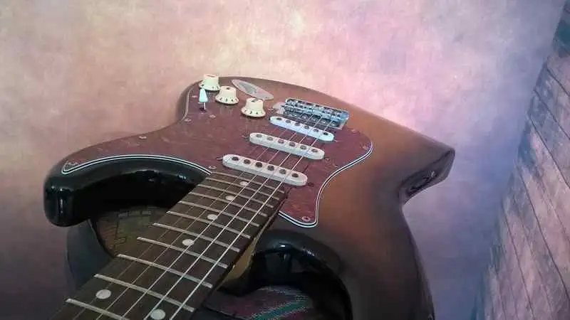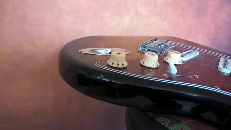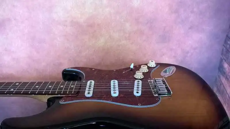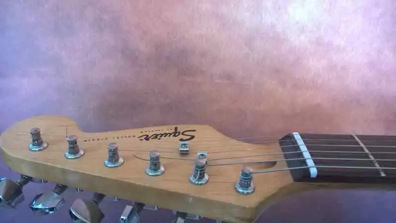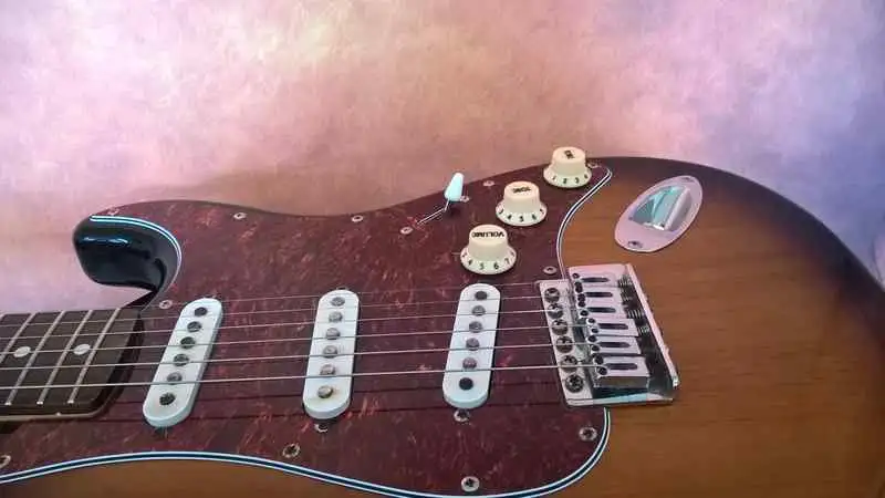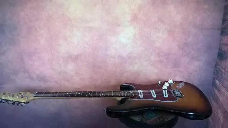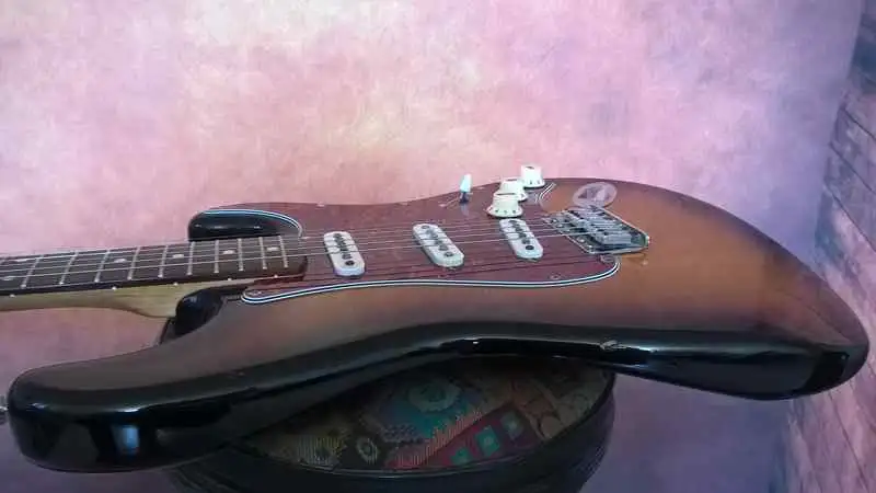 Squier Bullet Stratocaster by Fender gitár, 20th Unniversary kiadás (a 20. évfordulóra), tökéletesen működőképes állapotban eladó. Sunburst színű. Kisebb kopások vannak, ez a képeken látszik.
