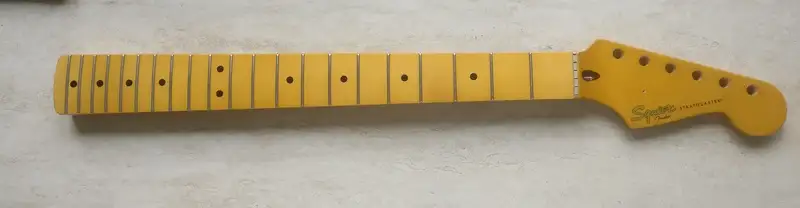 Sziasztok!Eladó egy nagyon szép állapotú Squier Classic Vibe `50-es juhar nyak. Koppanás és ütődésmentes! Majdnem quartersawn, bár ez a képeken nem látszik. Az érintőkön látszanak picit kopás-nyomok, de így is teljesen használható. Nekem nem csörgött be. A csavarjait és a nyaklemezt nem tudom vele adni, mert én is e nélkül vettem, és használatban vannak! Viszont a Squier NEM a Fender szabvány átmérő 4,1mm-es csavarokat használja gyárilag, hanem 5mm-est. Ez fontos! A Fenderrel is működik, de azzal nem lehet 100%-osan meghúzni mind a 4 csavart, csak 3-at (ilyet tudok adni vele, ha kell). Squierrel teljesen jó!