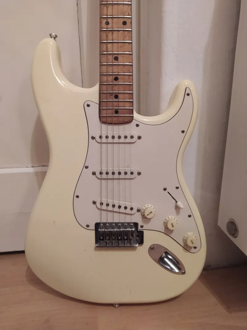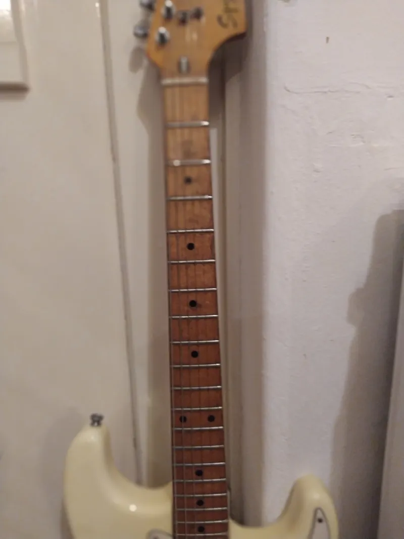 Sziasztok!Eladó egy régi Squier gitár. Sztem a nyak régi sq szériás a többi alkatrésze nem. Működik, jól szól.