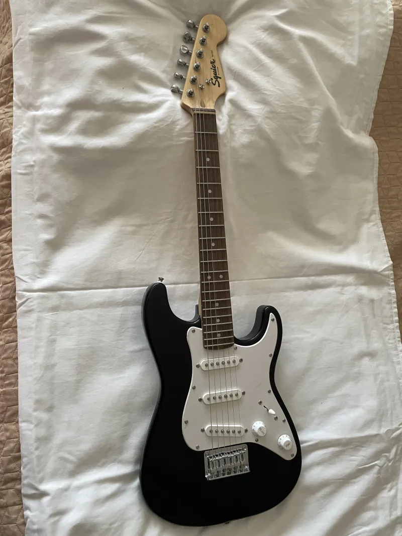 Eladó a képen látható kis-méretű squier-mini szólógitár. Kiválló gyerekeknek, kezdőknek, utazóknak.Szállítás