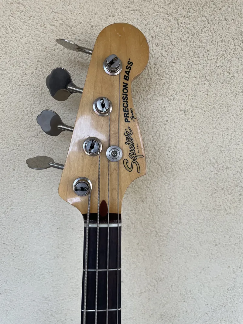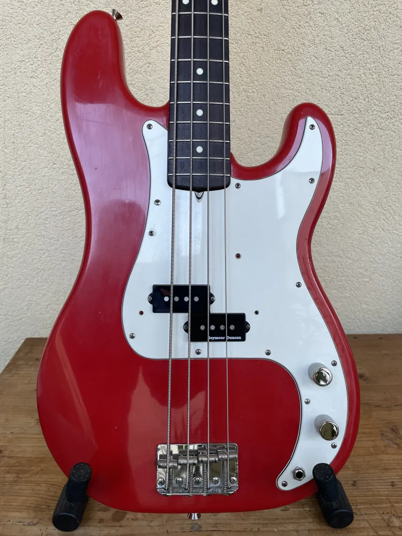 Eladó egy használt , de kitűnő állapotú, 1983. évben Japánban gyártott Squier SQ szériás PB Precision basszusgitár, fiesta red színben, rózsafa fogólapos.Egy éve lett utoljára hangszerész által beállítva (bund-síkolás, húrcsere..). Rezonáns test, kényelmes nyak, dögös preckó hangzás, kitűnő hangszer!