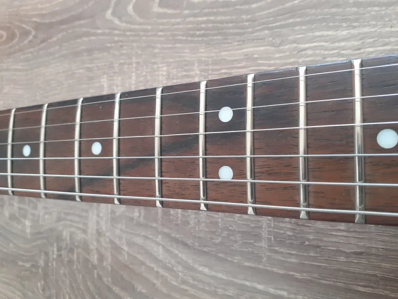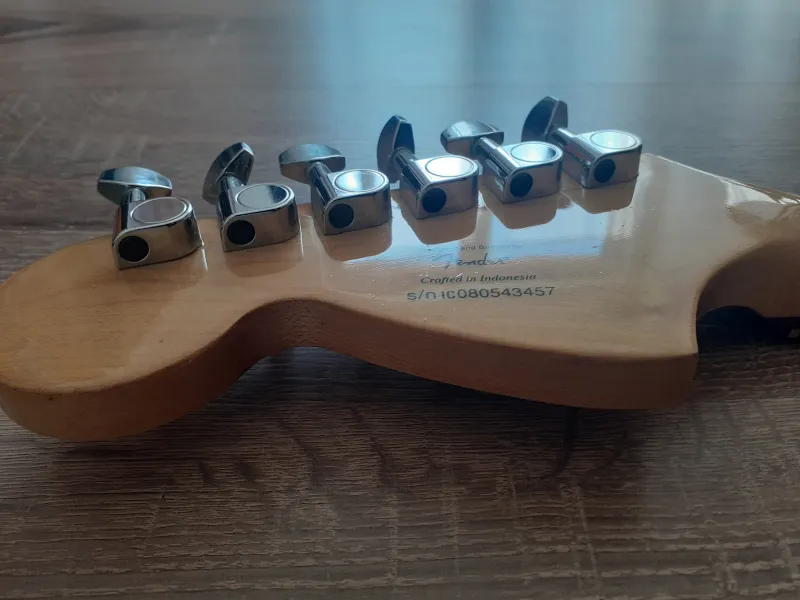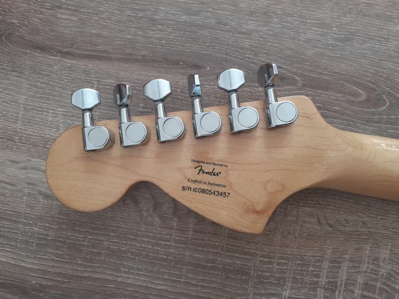 Megkímélt 2008-as Squier Standard nyak (22 bund - Crafted in Indonesia) kulcsokkal, réz felsőnyereggel, szép lakkozással, kitűnő bundokkal eladó.